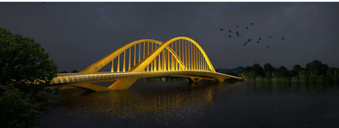 Phối cảnh ban đêm của phương án thiết kế cầu Một Vòm I156