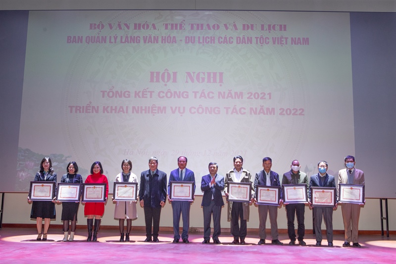 Phát biểu tại Hội nghị, Thứ trưởng Đoàn Văn Việt biểu dương những kết quả đã đạt được của Ban Quản lý Làng Văn hoá - Du lịch các dân tộc Việt Nam trong năm 2021. Thứ trưởng Đoàn Văn Việt nhấn mạnh: Trong bối cảnh dịch Covid-19 diễn biến phức tạp khiến đời sống kinh tế - xã hội bị ảnh hưởng nặng nề, những kết quả đạt được trong năm 2021 đã thể hiện được sự nỗ lực của tập thể cán bộ, công chức, viên chức, người lao động của Làng Văn hoá - Du lịch các dân tộc Việt Nam.
