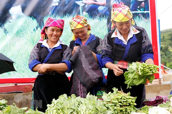 Gian hàng rau sạch của đồng bào Mông tại Mù Cang Chải