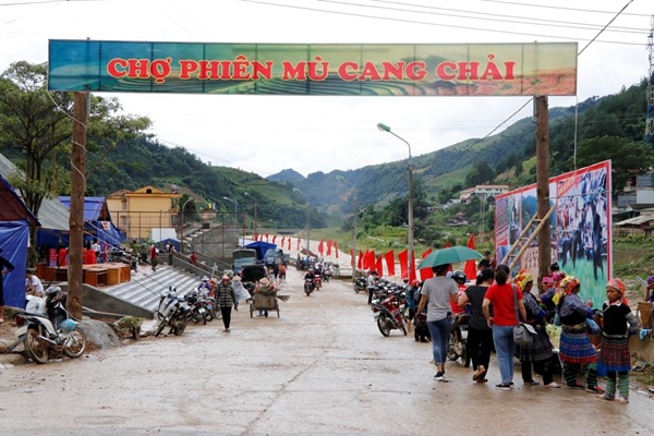 Chợ phiên Mù Cang Chải được tổ chức tại Sân vận động huyện với 32 gian hàng của 12 xã, thị trấn