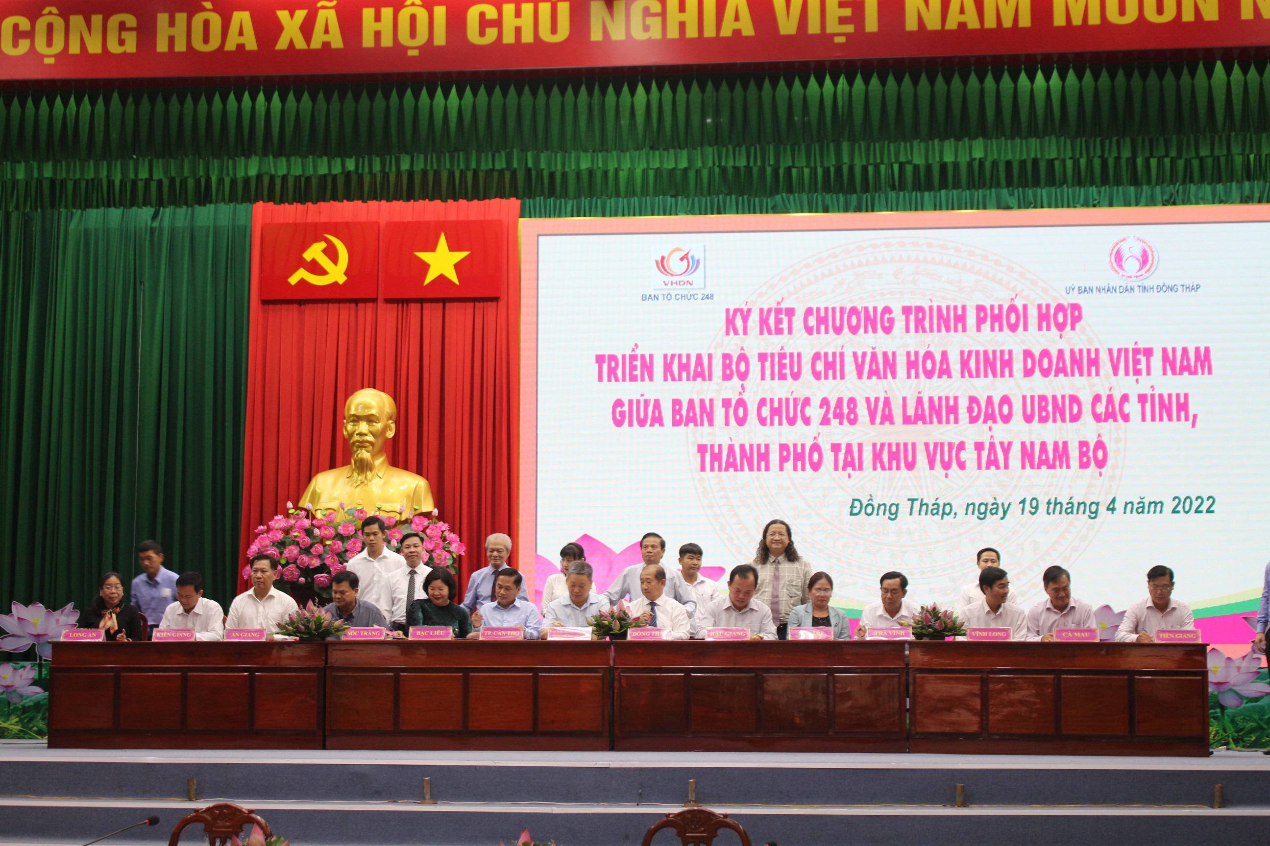 Lễ ký kết triển khai Bộ tiêu chí văn hóa kinh doanh Việt Nam giữa trưởng BTC 248 và đại diện lãnh đạo UBND 13 tỉnh Tây Nam Bộ