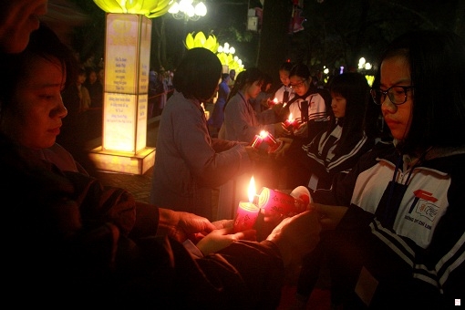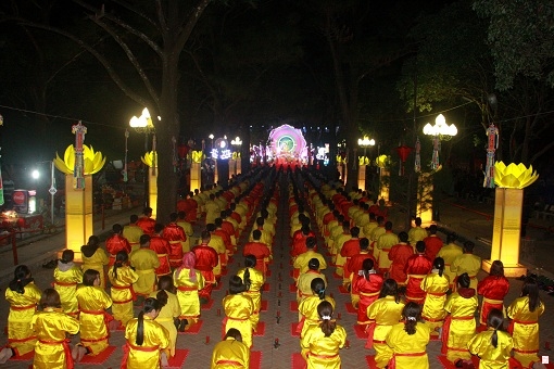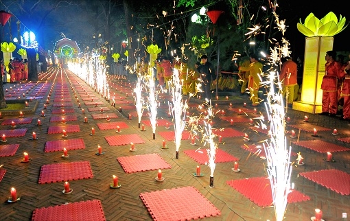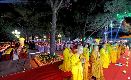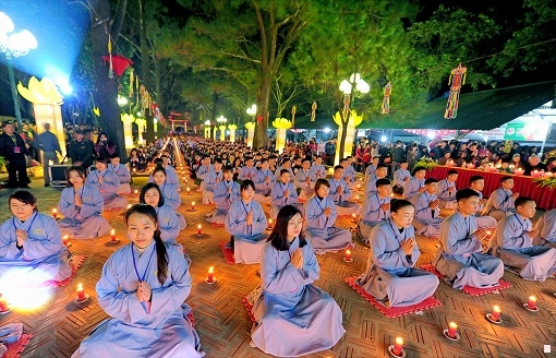 Nghi lễ có sự hiện diện của đông đảo các quý tôn đức Tăng, Ni và Phật tử gần xa về đây hội tụ với niềm hân hoan và lòng thành kính. Những ngọn nến được thắp lên, tỏa mình trong đêm tối đã tạo thành một khung cảnh lung linh và huyền ảo, lan tỏa khắp cõi nhân gian để soi sáng và dẫn lối cho chúng sinh thoát khỏi đường mê, quay về bến giác. Trên tinh thần đó, đêm Hoa Đăng Liên Hoa Hội Thượng nói lên tinh thần tục lệ truyền đăng, đem ánh sáng của đạo Phật soi khắp muôn nơi, là động lực thúc đẩy khiến hành giả có đủ từ bi, trí dũng, mang tình thương yêu và sự hiểu biết của mình làm lợi ích cho tự thân và nhân loại.