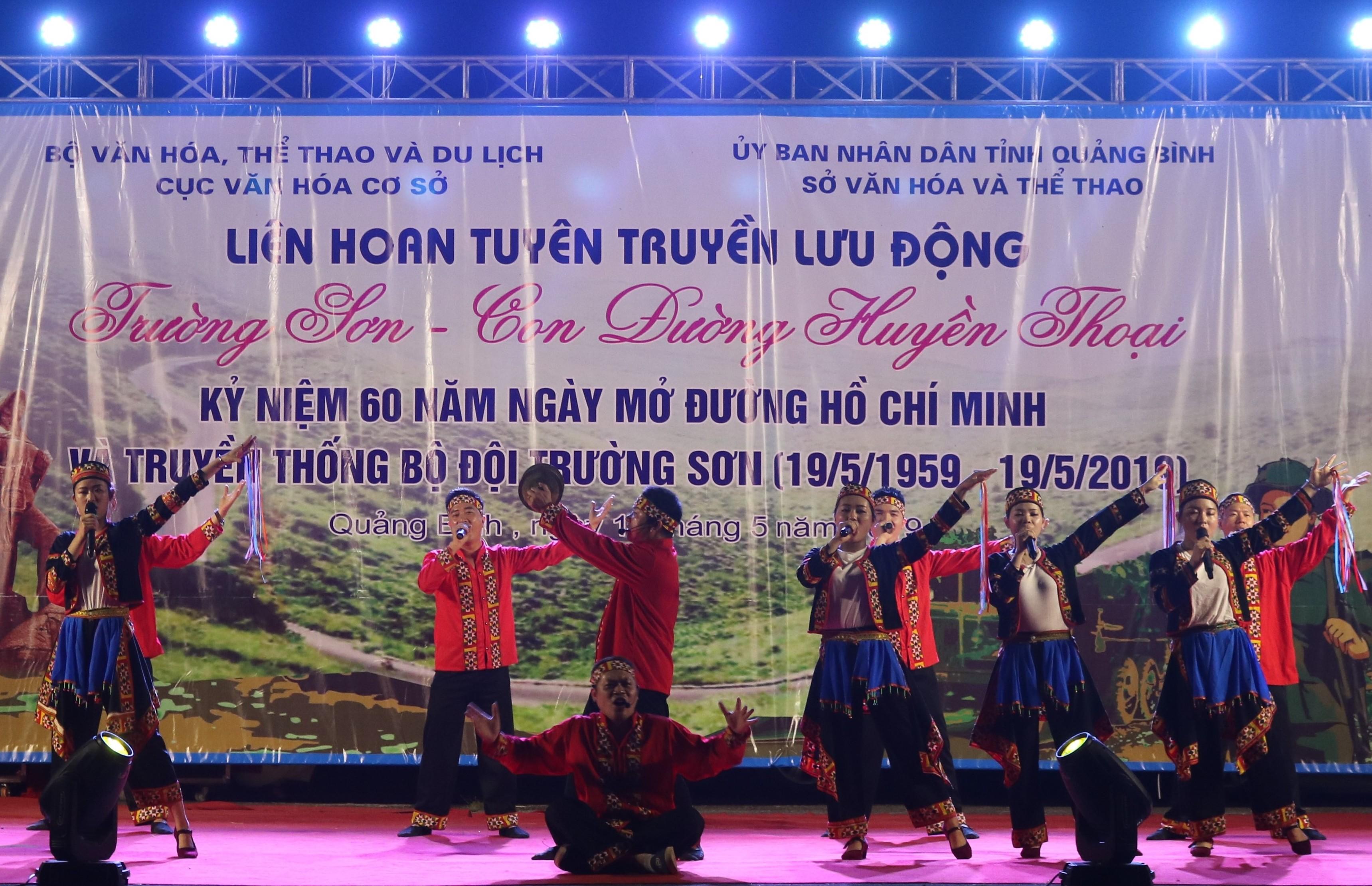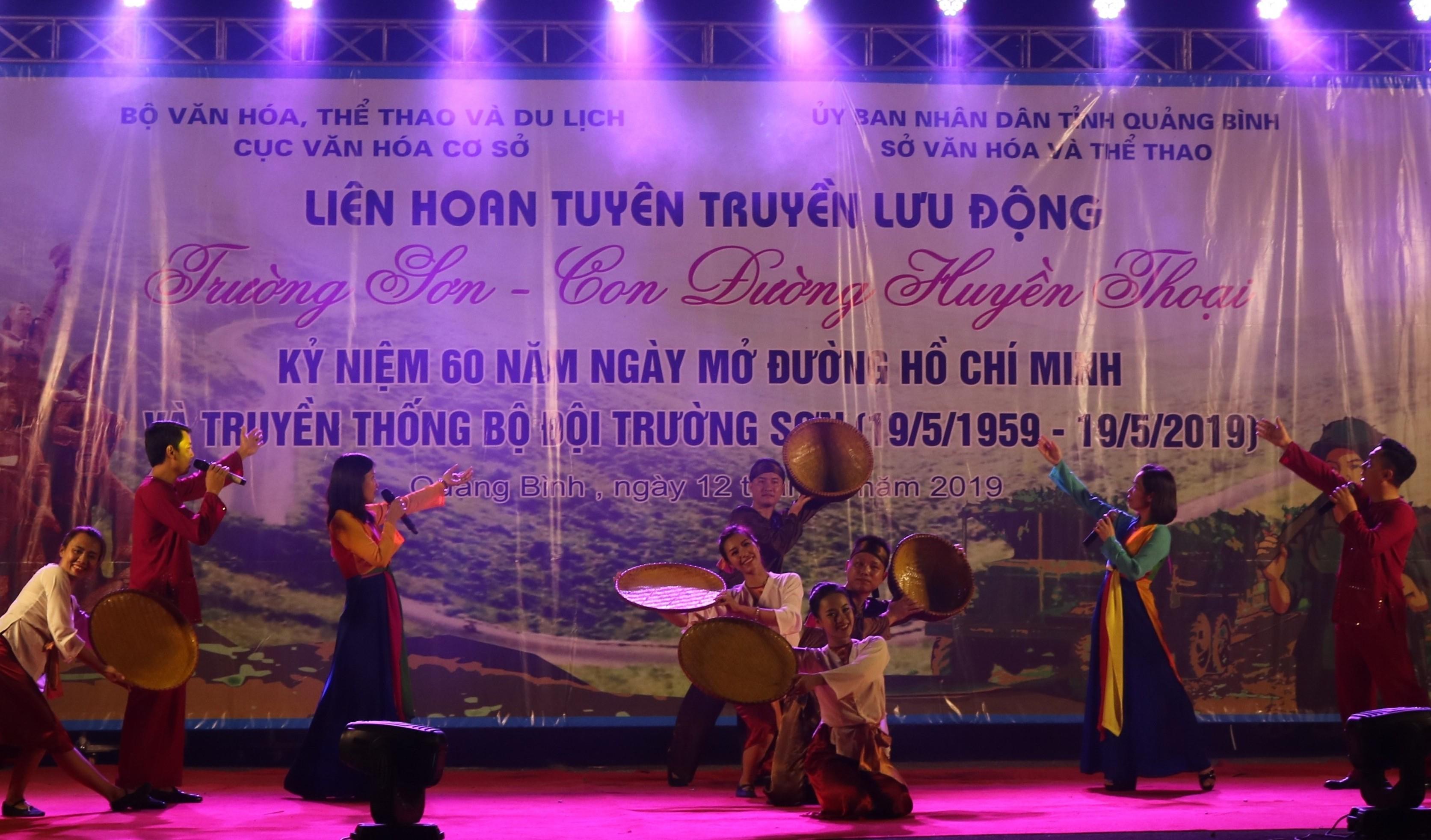 Chương trình Liên hoan tuyên truyền lưu động với chủ đề “Trường Sơn – Con đường huyền thoại” tại Quảng Bình có sự tham gia của 6 đội đến từ các tỉnh, thành: Bình Định, Cao Bằng, Vĩnh Phúc, Thanh Hóa, Tuyên Quang, Hải Phòng. Nhìn chung, các tiết mục ca, múa, nhạc tại liên hoan tuyên truyền đã mang đến cho người xem nhiều cung bậc cảm xúc. Chương trình góp phần tái hiện lại một thời kỳ lịch sử hào hùng của dân tộc. Trước những khó khăn, gian khổ, hiểm nguy nhưng những chiến sĩ làm nhiệm vụ trên tuyến đường Trường Sơn đã kiên cường, anh dũng đảm bảo tuyến đường thông suốt.