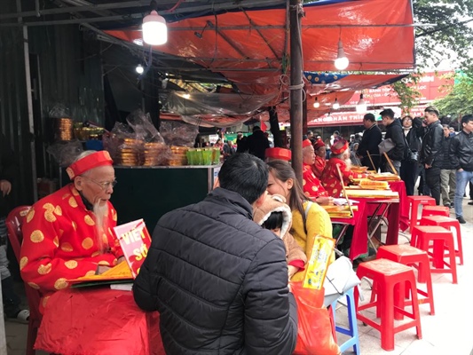 Đáng chú ý, theo ghi nhận của phóng viên, ngay gần khu vực sắp lễ và trên đường vào khu nội tự, có đến 5,6 bàn xổ số bóc thu hút rất đông người, gây nên tình trạng lộn xộn, thiếu mỹ quan và không trang trọng ở một địa điểm di tích linh thiêng. Những hình ảnh xô bồ, âm thanh hỗn độn cùng cách ứng xử còn thiếu chuẩn mực của cả người bán, người mua, rác thải từ những tấm vé số bóc vội vứt xuống khiến nhiều khách hành hương tỏ vẻ không hài lòng.