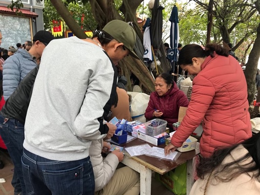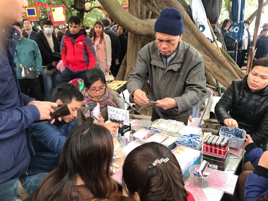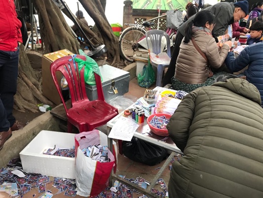 Những hàng xổ số bóc gây nên hình ảnh lộn xộn ngay gần khuôn viên nơi thờ tự