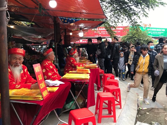 Thu hút đông du khách là dịch vụ viết sớ chữ Nho. Ngay từ bãi gửi xe đến con đường dẫn vào Phủ có rất đông các ông đồ mời chào du khách nhiệt tình.