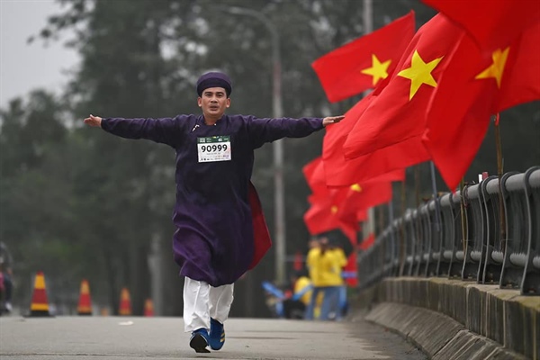 | Giải chạy marathon là hoạt động thể thao quần chúng, xem như là ngày hội của cộng đồng. Ở đó, khuyến khích các vận động viên mang trang phục đẹp lạ, và đặc biệt có thể nhận diện văn hóa địa phương. Trước khi giải diễn ra, tôi đã chọn cho mình một bộ áo dài ngũ thân và đã từng mặc thử để chạy, và cảm thấy thoải mái. Lần này, khi tôi chạy dọc các tuyến đường trong hành trình chạy, nhiều người dân cũng như vận động viên cùng dự giải cũng cổ vũ nhiệt tình. (Anh PHAN GIA TIẾN, hiện công tác tại Trường Cao đẳng Công nghiệp Huế thuộc Bộ Công thương) |