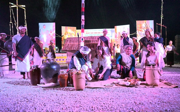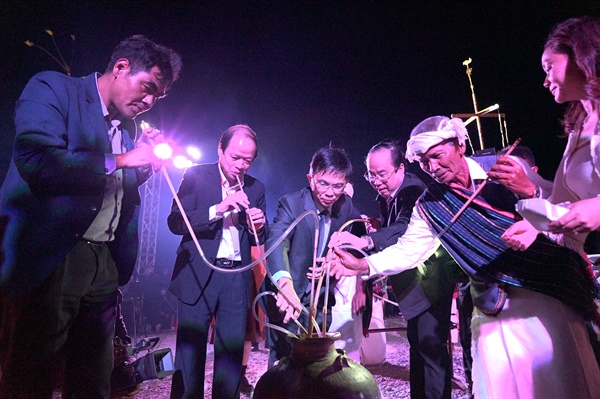 Lãnh đạo tỉnh và các sở, ngành, đoàn thể và già làng khai chóe rượu cần