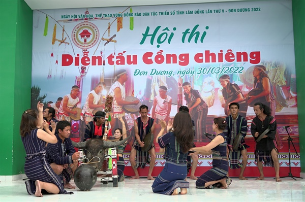 Phát biểu tại lễ khai hội, Phó Chủ tịch UBND tỉnh Lâm Đồng, ông Đặng Trí Dũng đánh giá cao tinh thần, trách nhiệm và tình yêu lớn đối với tinh hoa di sản văn hóa cồng chiêng, văn hóa dân gian truyền thống của đồng bào, các nghệ nhân, những người đang đóng góp phần tích cực vào sự nghiệp bảo tồn và phát huy các giá trị di sản văn hóa truyền thống Lâm Đồng. Ông Dũng nhấn mạnh: “Thời gian qua, các nhà nghiên cứu đã tốn khá nhiều thời gian, công sức và giấy mực để nói về cái hay, cái đẹp, cái đặc sắc của văn hóa cồng chiêng Tây Nguyên nói chung, cồng chiêng Nam Tây Nguyên nói riêng; với chúng ta, Ngày hội năm 2022 là một dịp minh chứng sống động nhất cho những giá trị văn hóa đó”. Phó Chủ tịch UBND tỉnh Lâm Đồng cũng băn khoăn: “trong những buôn làng hiện nay, số lượng người biết đánh cồng chiêng không nhiều như trước, tuổi tác phần lớn đã cao và quan trọng hơn cả là những dịp để diễn tấu cồng chiêng ngày càng ít đi…”.