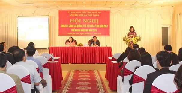 Báo cáo tại Hội nghị cho biết: Nghệ An là tỉnh có số lượng di tích danh thắng lớn với 2.602 di tích, trong đó có 424 di tích đã được xếp hạng; 127 lễ hội (lễ hội truyền thống chiếm 96%), trong đó có 29 lễ hội trong danh mục quản lý lễ hội của tỉnh. Hiện có 5 lễ hội truyền thống được Bộ VHTTDL quyết định công nhận, đưa vào danh mục di sản văn hóa phi vật thể quốc gia; 2 lễ hội đang trình thủ tục hồ sơ đề nghị. Trong những năm qua, công tác quản lý nhà nước về lễ hội cơ bản đã được thực hiện nghiêm túc; thông qua tổ chức lễ hội, hệ thống di tích, công tác bảo vệ và phát huy giá trị di tích được thực hiện tốt. Các vấn đề như thực hiện nếp sống văn minh; tổ chức các hoạt động dịch vụ, quản lý kinh phí thu từ các dịch vụ trong khu vực lễ hội; công tác thu chi tiền công đức… có nhiều chuyển biến tích cực.