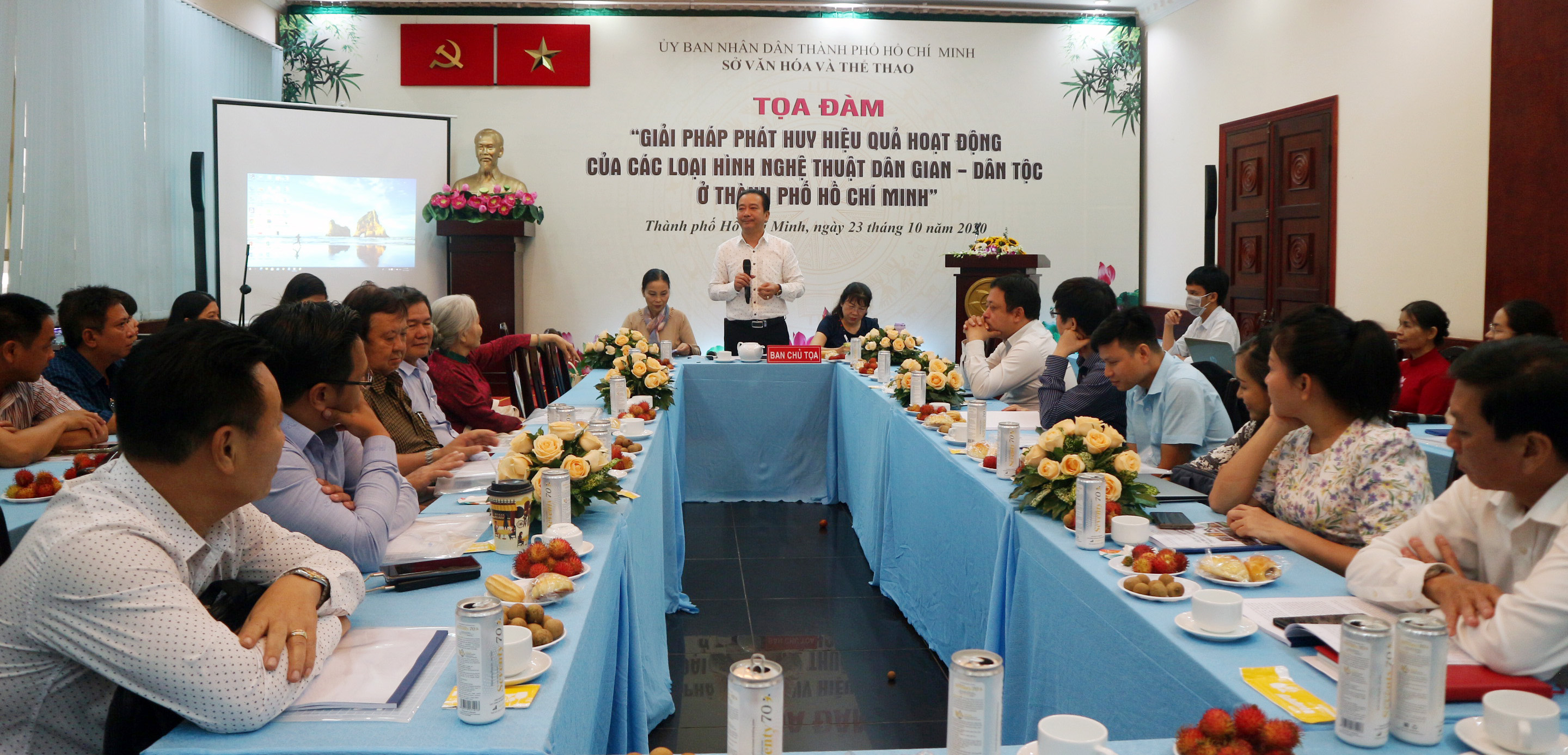 NSƯT Võ Trọng Nam, Phó Giám đốc Sở VHTT TP.HCM cho biết, trong thời gian tới, Sở sẽ phối hợp với các đơn vị liên quan tập trung củng cố, thực hiện các giải pháp, tháo gỡ những vướng mắc mà các đơn vị đã đặt ra. Trước mắt, TP.HCM cần có chính sách đối với các loại hình dân gian-dân tộc; cần thiết phải xây dựng các mô hình, tạo không gian văn hóa phù hợp cho nghệ thuật dân gian-dân tộc, nhận diện loại hình cốt lõi để biến đổi thích ứng với hoàn cảnh, bối cảnh mới nhưng không làm mất đi bản sắc.