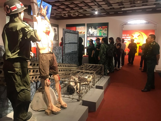 Nhiều hiện vật về các hình thức tra tấn, giết hại tù nhân một cách vô nhân tính như thời trung cổ được trưng bày như: đục răng, bẻ răng, dội nước sôi, đóng đinh, gõ thùng, nhốt chuồng cọp, đánh đập tù nhân bằng vồ sầu đời, gậy biệt ly, roi cá đuối; cưa chân không gây mê… khiến nhiều tù binh đau đớn quằn quại, nhiều khi là mất mạng ngay sau đó. Nhiều đồng chí đã anh dũng hy sinh bởi các đòn tra tấn của địch như: Anh hùng LLVTND Nguyễn Đình Xô (Bắc Ninh), Liệt sĩ Đặng Hồng Sơn (Hà Nội)… Nhiều người bị thương tật vĩnh viễn đến nay vẫn còn lưu dấu vết như: đồng chí Cao Bá Trác (Sóc Sơn, Hà Nội); Thiếu tá, Anh hùng LLVTND Nguyễn Văn Thương (Tây Ninh); đồng chí Nguyễn Văn Tằng (Vụ Bản, Nam Định); đồng chí Nguyễn Trọng Lượng (Tĩnh Gia, Thanh Hóa)…