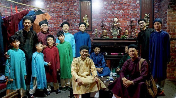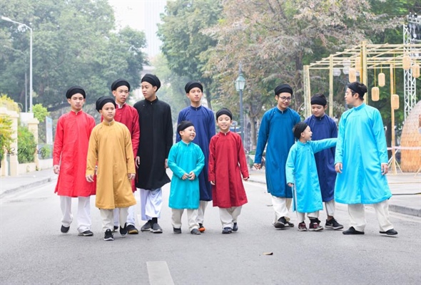 Anh Đinh Hồng Cường, thành viên nhóm CLB Áo dài Nam truyền thống thuộc Đình làng Việt kể chuyện, theo lịch hẹn, 7h30 sáng hôm đó, 16 khuôn mặt thiên thần và phụ huynh có mặt tại gian hàng “Áo dài của đàn ông Việt” để chuẩn bị mặc áo dài ngũ thân truyền thống, mừng “Lễ hội văn hóa dân gian trong đời sống đương đại”.