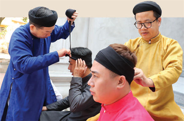 Họa sĩ Nguyễn Đức Bình, trưởng nhóm Đình làng Việt, người khởi xướng và thúc đẩy niềm đam mê của nhóm áo dài nam truyền thống, cũng là nhân tố thường tạo ra các sự kiện quảng bá áo dài Việt trong thời gian qua. Trong bộ áo dài ngũ thân màu vàng dân dã, “trưởng thôn” thoăn thoắt vấn khăn cho một thành viên trong nhóm, anh nói: “Thoạt nhìn sẽ nghĩ đơn giản nhưng không đơn giản chút nào đâu. Hình ảnh của áo dài nam trở về trong đời sống hôm nay dù còn mờ nhưng là kết quả mà những người trong cuộc đã dành rất nhiều thời gian, công sức”.