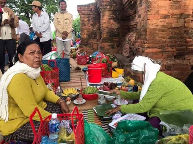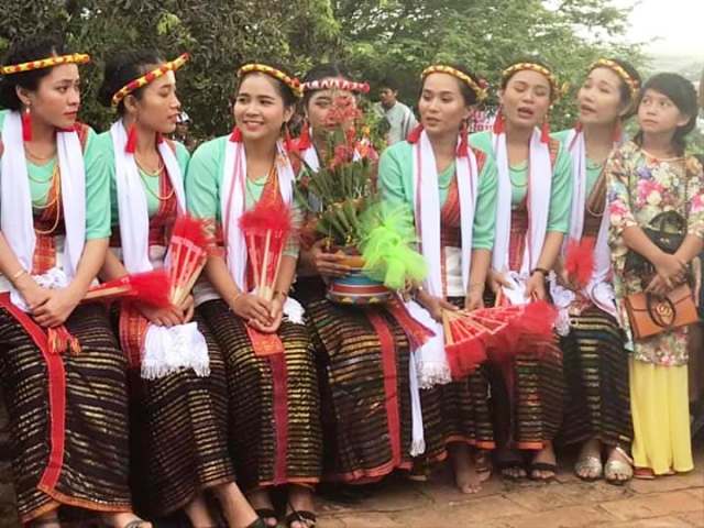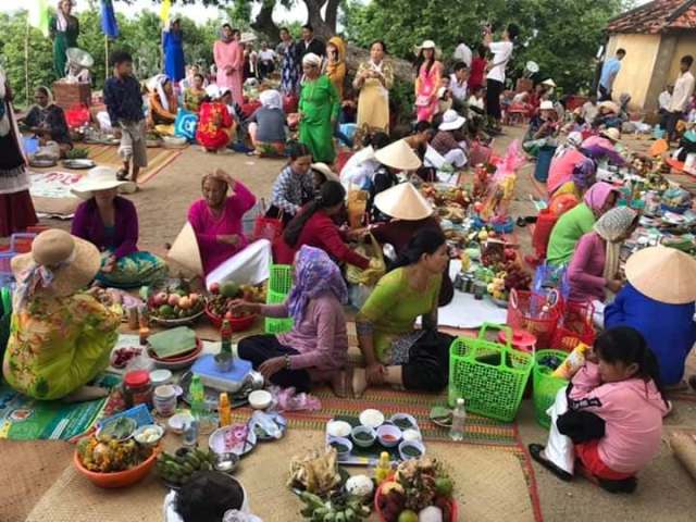Đồng bào Chăm mang theo lễ vật cúng kính cầu mong mưa thuận gió hòa