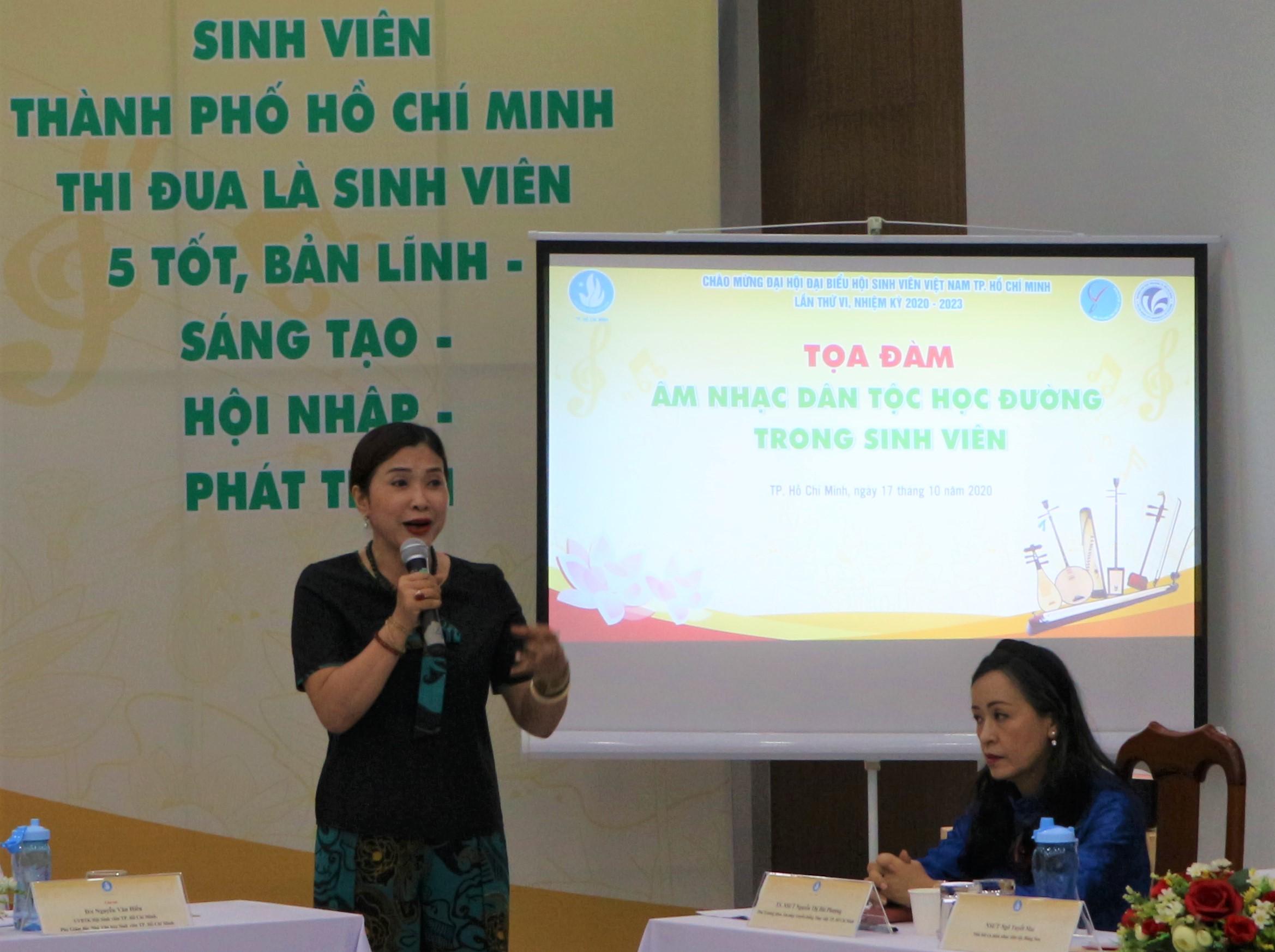Nhằm tạo điều kiện cho học sinh, sinh viên tiếp cận với các thể loại nghệ thuật truyền thống, vừa qua, Nhà Văn hóa Sinh viên TP.HCM đã tổ chức buổi tọa đàm mang chủ đề “Âm nhạc dân tộc học đường trong sinh viên”, với sự tham gia của các đơn vị và chuyên gia có chuyên môn, nhiều kinh nghiệm nghiên cứu về các thể loại âm nhạc truyền thống như: NSƯT Ngô Tuyết Mai, NSƯT Huỳnh Khải, NSƯT Hải Phượng, TS Mai Mỹ Duyên…