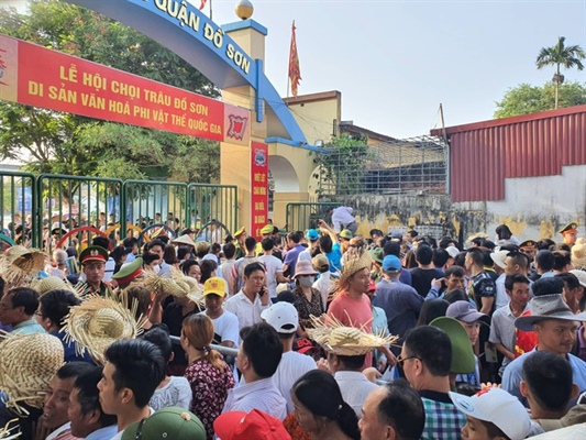 Quá tải, biển người hào hứng xem chọi trâu Đồ Sơn