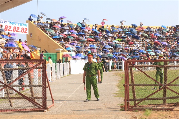 Trước đó, nhằm bảo đảm an toàn tuyệt đối cho người dân, du khách và các chủ trâu, trước ngày các “ông trâu” thi đấu, Ban tổ chức đã hoàn thành gia cố hàng rào. Các đường dắt trâu cũng được xây mới, bảo đảm không để trường hợp trâu chạy ra phía ngoài khu vực nuôi nhốt. Các cán bộ, chiến sĩ của Công an quận, Đồn Biên phòng Đồ Sơn, Ban Chỉ huy quân sự Đồ Sơn phối hợp với gần 100 bảo vệ chuyên nghiệp thực hiện nhiệm vụ bảo đảm an ninh, trật tự tại khu vực trong và ngoài sân vận động.