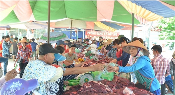 Cùng với thời điểm sau khi những kháp đấu đầu tiên kết thúc là lúc khu vực bán thịt trâu chọi bên ngoài sân vận động trung tâm quận Đồ Sơn bắt đầu nhộn nhịp. Nhiều người tìm mua thịt trâu chọi theo quan niệm dân gian sẽ đem lại may mắn. Thời điểm đầu giá bán khoảng 2,5 triệu đồng/kg. Sau giảm xuống còn 1,5-2 triệu đồng/kg. Lượng người mua khá đông. Cũng có nhiều người chờ thời điểm cuối, khi giá thịt trâu chọi giảm xuống mới mua.