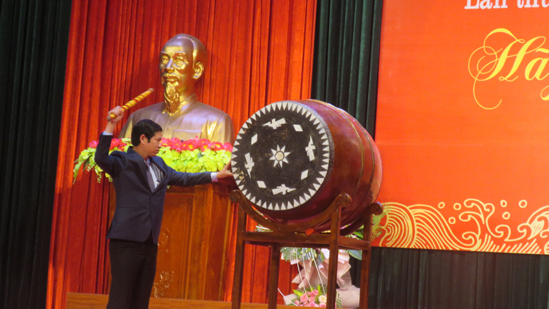 Ông Hồ An Phong, Phó Chủ tịch UBND tỉnh Quảng Bình đánh trống khai mạc Ngày thơ