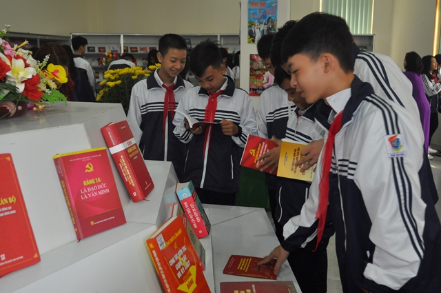 Đông đảo học sinh đến đọc sách, báo tại địa điểm trưng bày