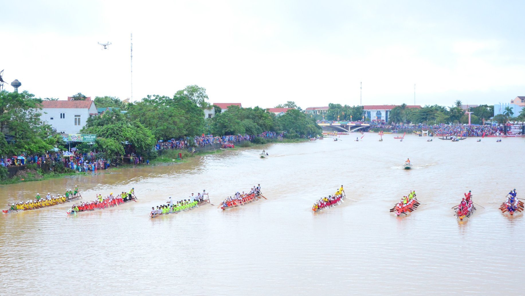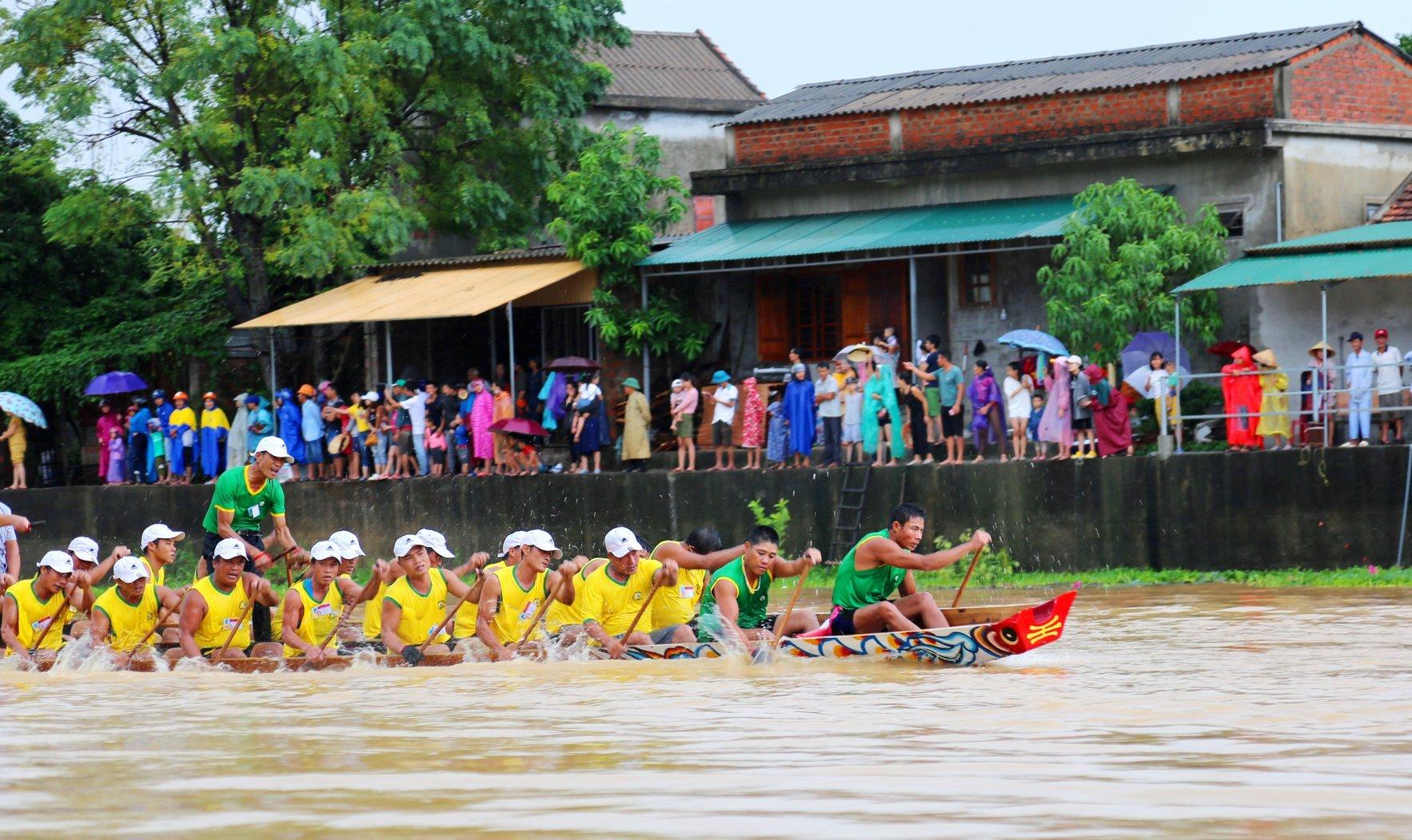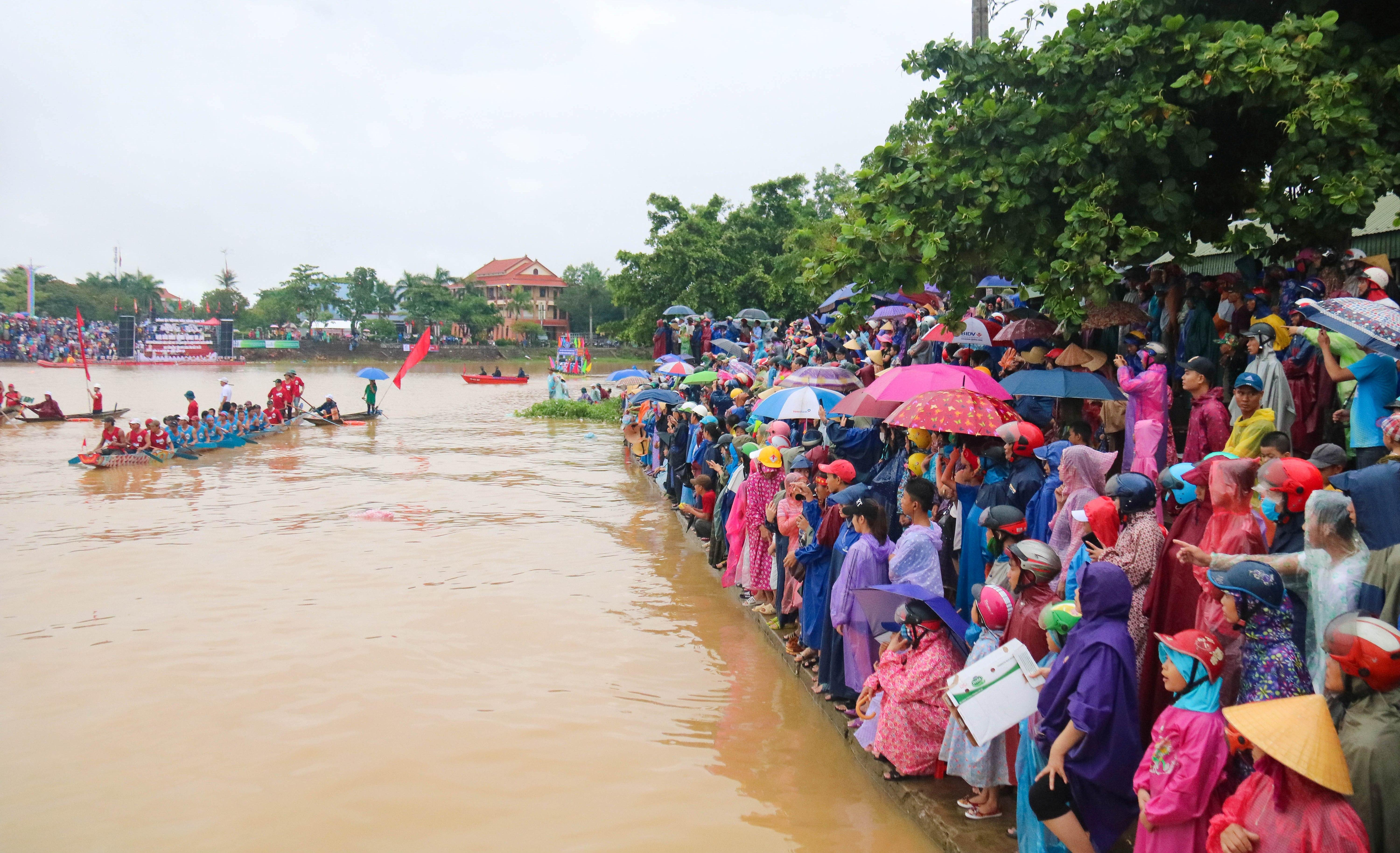 Do ảnh hưởng của áp thấp nhiệt đới, sáng ngày 2.9 ở huyện Lệ Thủy mưa rất lớn nhưng không khí lễ hội bơi, đua thuyền vẫn diễn ra sôi động. Hàng vạn người dân đã đội mưa cổ vũ, động viên các đội bơi, đua dọc hai bên bờ sông Kiến Giang.