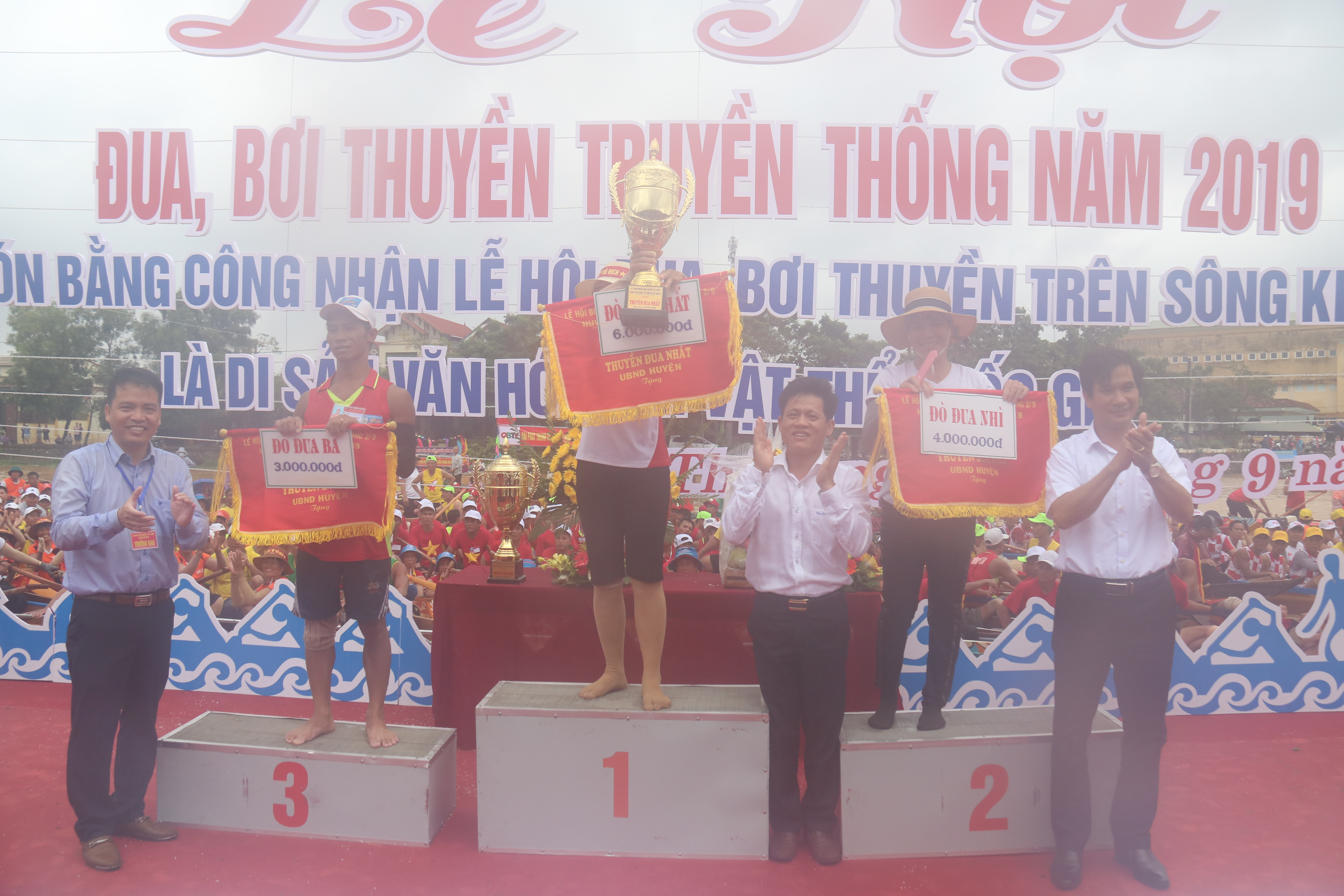Kết thúc giải, Ban tổ chức đã trao giải Nhất thuyền đua nam bảng A cho đội Tân Thủy, giải Nhì cho đội Phú Thủy và giải Ba cho đội Sơn Thủy. Ở nội dung thuyền đua nam bảng B, giải Nhất được trao cho đội Mai Hạ, giải Nhì cho đội Phan Xá và giải Ba cho đội Phú Thọ. Ở thuyền đua nữ, giải Nhất thuộc về đội An Xá, giải nhì cho đội Lộc An và giải Ba cho đội Thượng Phong.