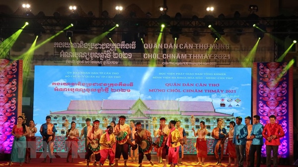 Tối 10.4, chương trình nghệ thuật và Lễ tổng kết Tết quân dân mừng Chol Chnam Thmay năm 2021 đã diễn ra tại Học viện Phật giáo Nam Tông Khmer, thuộc phường Châu Văn Liêm, quận Ô Môn, thành phố Cần Thơ.