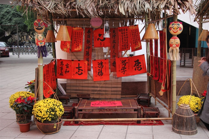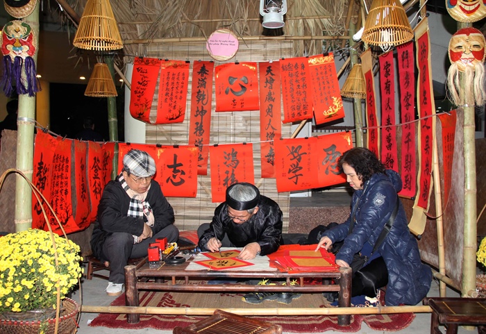 Cũng trong không gian này, BTC sắp đặt góc trưng bày hoa nghệ thuật với chủ đề “Hoa Xuân”, với sự kết hợp hoa tươi, hoa làm từ chất liệu giấy, đất, lụa, gỗ, tre, nứa của các nghệ nhân đến từ các làng nghề truyền thống như: hoa giấy Thanh Tiên (Huế), mây tre đan Phú Vinh, hoa lụa (Hà Nội), mỹ nghệ Sơn Đồng (Hà Nội)... Góc “Thư pháp ngày xuân” là nơi dành cho du khách cũng như những người yêu thích muốn tìm hiểu và khám phá về nghệ thuật thư pháp, với những câu thư pháp về mùa xuân, về tết trên các chất liệu phong phú nhằm tôn vinh những giá trị văn hóa truyền thống tốt đẹp của dân tộc.