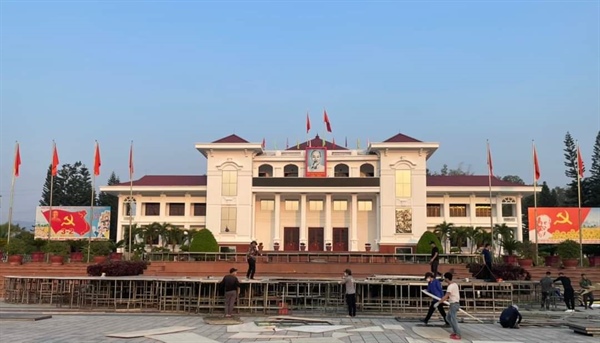 Công tác chuẩn bị sân khấu đang được gấp rút hoàn thành