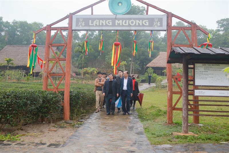 Tại không gian văn hóa đồng bào dân tộc Mường Thứ trưởng Đoàn Văn Việt đã ân cần động viên đồng bào các dân tộc hiện đang hoạt động tại Làng luôn cố gắng, nỗ lực phát huy và quảng bá những nét văn hóa đặc sắc của dân tộc mình tới du khách