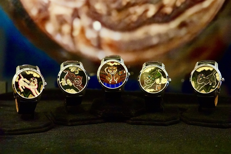 Bức tiểu họa mặt số đồng hồ lấy cảm hứng từ tranh dân gian Ngũ Hổ