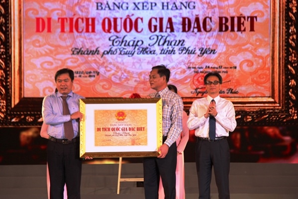Tại Lễ khai mạc, Phó Thủ tướng Vũ Đức Đam đã trao Bằng xếp hạng di tích quốc gia đặc biệt kiến trúc nghệ thuật Tháp Nhạn (thành phố Tuy Hòa, tỉnh Phú Yên) cho Đảng bộ và chính quyền nhân dân tỉnh Phú Yên.