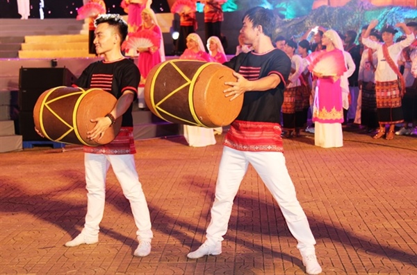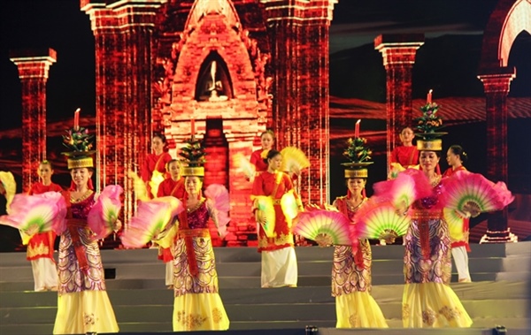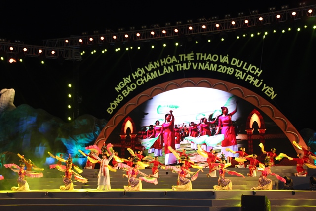 Trong đêm khai mạc, các tiết mục nghệ thuật Chăm tái hiện đời sống văn hóa Chăm các vùng miền cùng nhịp điệu Trống Đôi, Cồng Ba rộn ràng, hòa vào đó là vũ điệu múa uyển chuyển sinh động của các cô gái Chăm đã thực sự lay động khán giả.