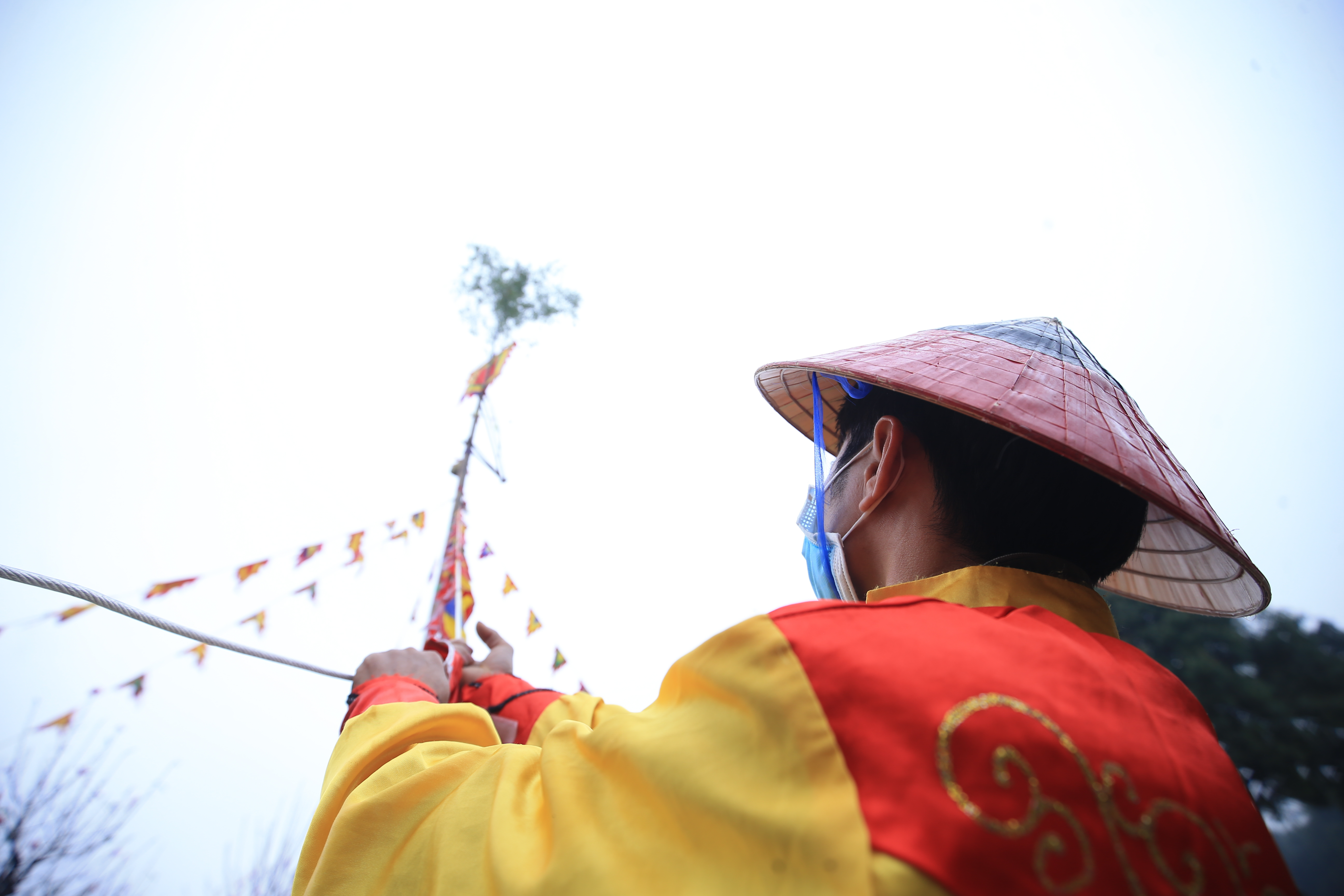 Sau nghi thức thả cá, đoàn rước trở về khu vực Đoan Môn tái hiện việc dựng cây nêu ngày Tết