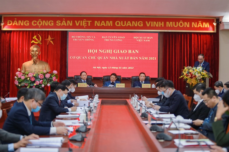 Phó Trưởng ban Ban Tuyên giáo Trung ương Trần Thanh Lâm; Thứ trưởng Bộ TTTT Phạm Anh Tuấn; Chủ tịch Hội Xuất bản Việt Nam Hoàng Vĩnh Bảo đồng chủ trì Hội nghị