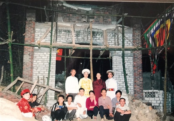 Hình ảnh bà Nguyễn Thị Huyền (Quảng Ninh) và một số người dân trong những ngày đầu xây dựng đền Đá Thiên (ảnh do bà Nguyễn Thị Huyền cung cấp)