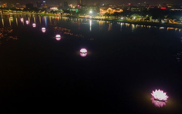 Thắp sáng 7 hoa sen khổng lồ trên sông Hương mừng Đại lễ Phật đản