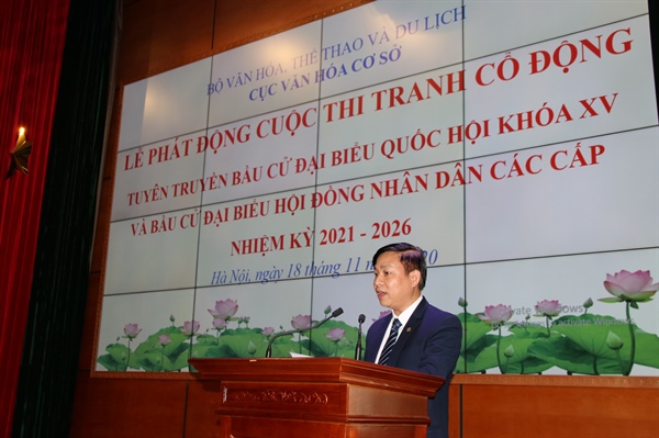 Phó Cục trưởng Cục Văn hóa cơ sở Lương Đức Thắng phát biểu tại lễ phát động