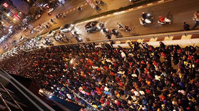 Cứ đến hẹn lại lên, Lễ cúng sao giải hạn chùa Phúc Khánh (Hà Nội) vào rằm tháng giêng khiến một đoạn đường dài khoảng 200m nối từ đường Tây Sơn - Nguyễn Trãi bị tê liệt hoàn toàn. Ảnh: Nguyễn Khánh
