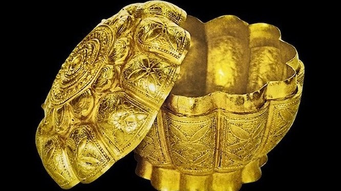 16- Hộp vàng Ngọa Vân - Yên Tử (Niên đại: Thế kỷ XIV, hiện lưu giữ tại Bảo tàng tỉnh Quảng Ninh).