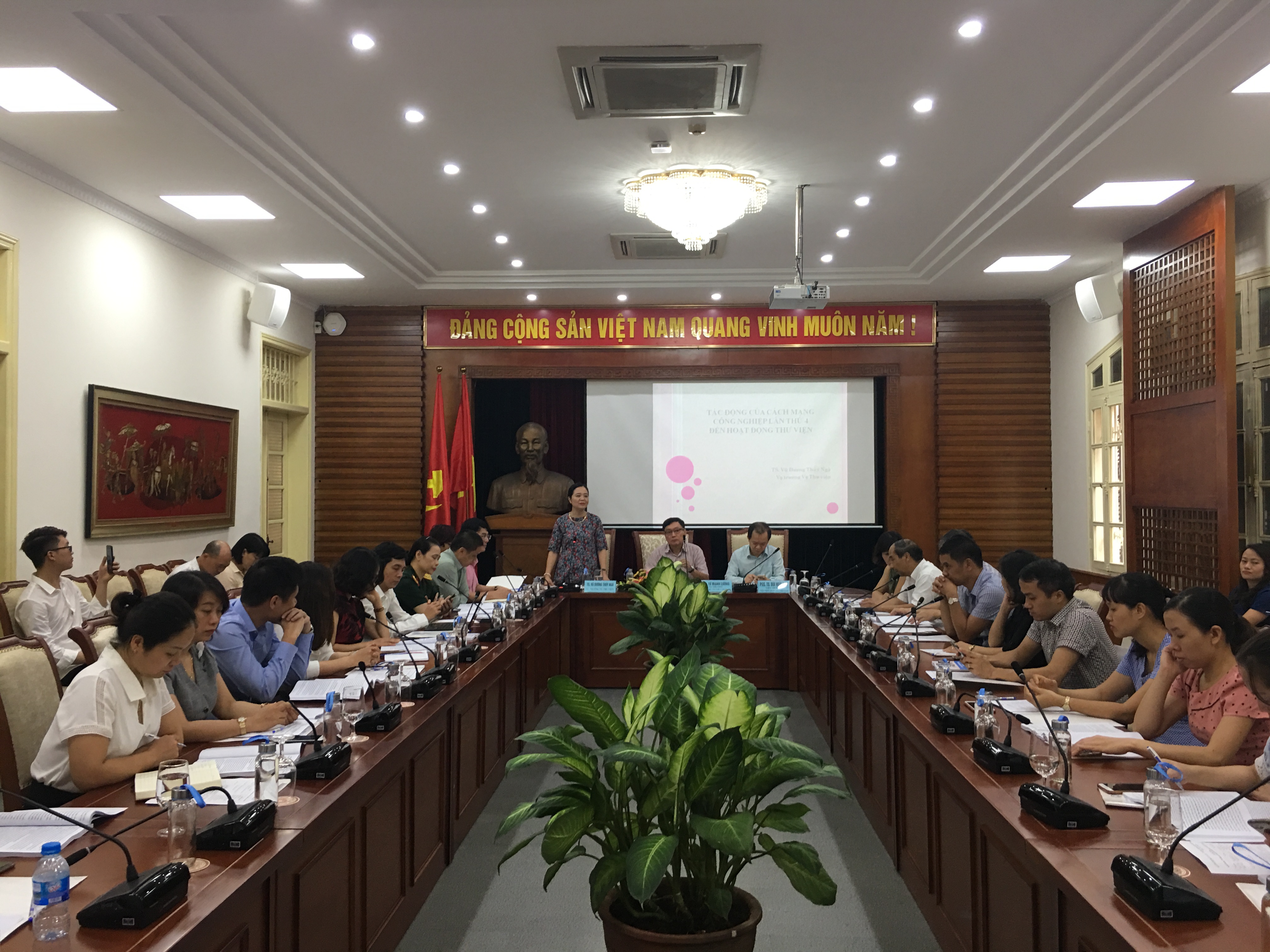 Tại hội thảo, các nhà khoa học, nhà quản lý, các chuyên gia tập trung đánh giá tác động của cách mạng công nghiệp lần thứ 4 (CM 4.0) trong hoạt động thu thập, bảo tồn và phát triển vốn tài liệu của thư viện; Tác động trong việc tạo lập, cung cấp các sản phẩm và dịch vụ thông tin thư viện; Xu hướng đào tạo, bồi dưỡng nguồn nhân lực ngành thông tin thư viện đáp ứng yêu cầu của CM 4.0…