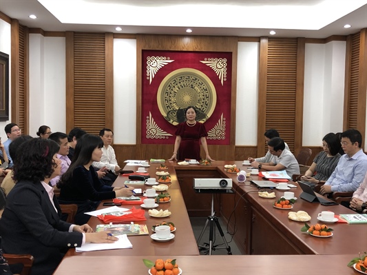 Bà Vũ Dương Thúy Ngà, Vụ trưởng Vụ Thư viện phát biểu tại buổi họp