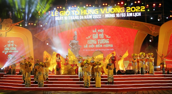 Lễ hội Giỗ Tổ Hùng Vương năm 2022 tại TP.HCM diễn ra từ ngày 8-11.4 với nhiều hoạt động như: Chương trình nghệ thuật phục vụ miễn phí, các khu vực trưng bày cổ vật, trưng bày trang phục 54 dân tộc, khu trò chơi dân gian, giới thiệu văn hóa ẩm thực ba miền… đã mang đến những trải nghiệm văn hóa thú vị, lan tỏa tinh thần hướng về cội nguồn dân tộc, tạo thêm tình cảm gắn kết, tự hào về truyền thống văn hóa - lịch sử của cha ông. Chương trình biểu diễn nghệ thuật có sự tham gia của văn nghệ sĩ ba miền như: NSƯT Tô Châu, NSƯT Việt Hoàn, các ca sĩ: Huỳnh Lợi, Phạm Kim Thoa, Huyền Trang, Thu Trang, Học viện Nghệ thuật Queen Art, vũ đoàn Mây, vũ đoàn Gió Việt… Đạo diễn Hoàng Duẩn viết kịch bản và làm tổng đạo diễn chương trình.