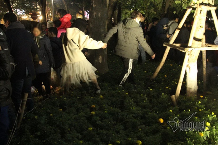 Vườn hoa Hồ Gươm bị giẫm đạp đêm Giao thừa Tết Dương lịch 2019 Ảnh: VIETNAMNET