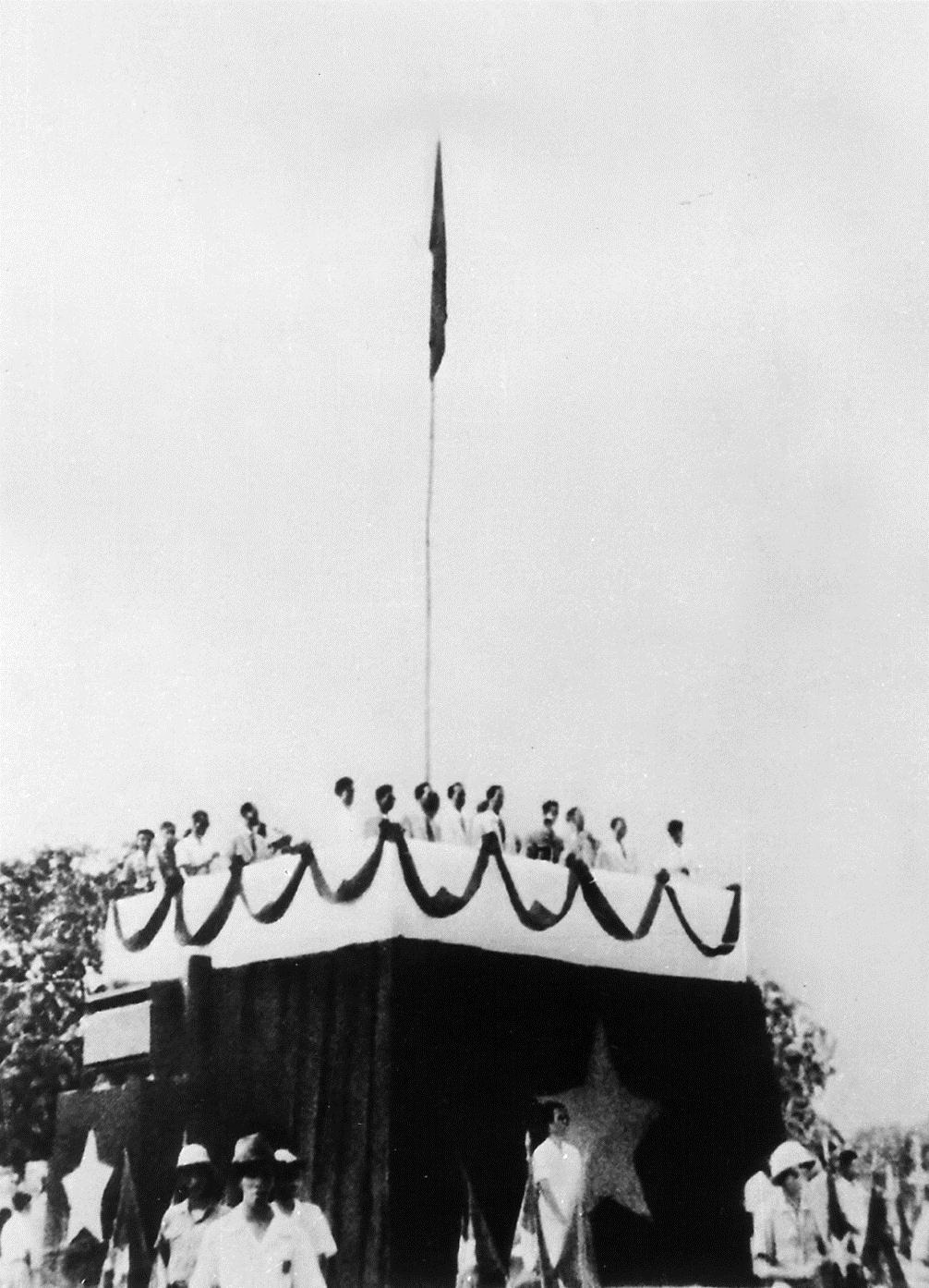 Chủ tịch Hồ Chí Minh đọc bản Tuyên ngôn Độc lập tại Quảng trường Ba Đình ngày 2.9.1945, tuyên bố trước toàn thế giới về sự ra đời của nước Việt Nam Dân chủ Cộng hòa