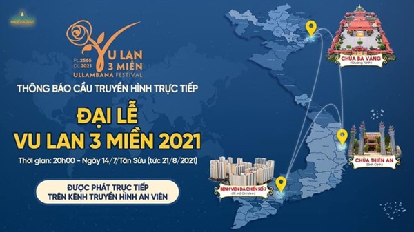 Theo đó, Đại lễ sẽ diễn ra vào lúc 20h ngày 21.8 (nhằm 14.7 năm Tân Sửu), được phát sóng trên kênh truyền hình An Viên và các ứng dụng, nền tảng số khác. Chương trình sẽ chuyển tải những câu chuyện cảm động về người mẹ, sự vất vả hy sinh cao cả của những người mẹ nơi tuyến đầu chống dịch trong các bệnh viện dã chiến, khu cách ly, cũng như tình cảm của những người con đang ngày đêm trong bộ đồ blouse trắng hướng về mẹ cha trong những ngày Vu lan này. Đại lễ Vu Lan năm nay cũng sẽ có các nghi lễ nguyện cầu quốc thái dân an, bệnh tật tiêu trừ và cầu siêu cho các anh hùng liệt sĩ, những người chết do đại dịch Covid-19 được thực hiện tại hai điểm cầu là chùa Ba Vàng và chùa Thiên An.