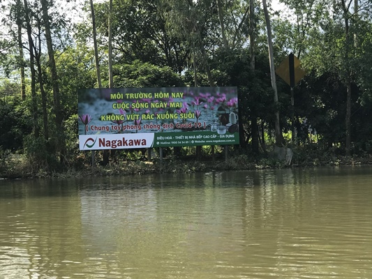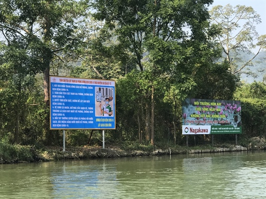 Một số hình ảnh panô, áp phích tuyên truyền trực quan được lắp dựng hai bên bờ suối Yến: