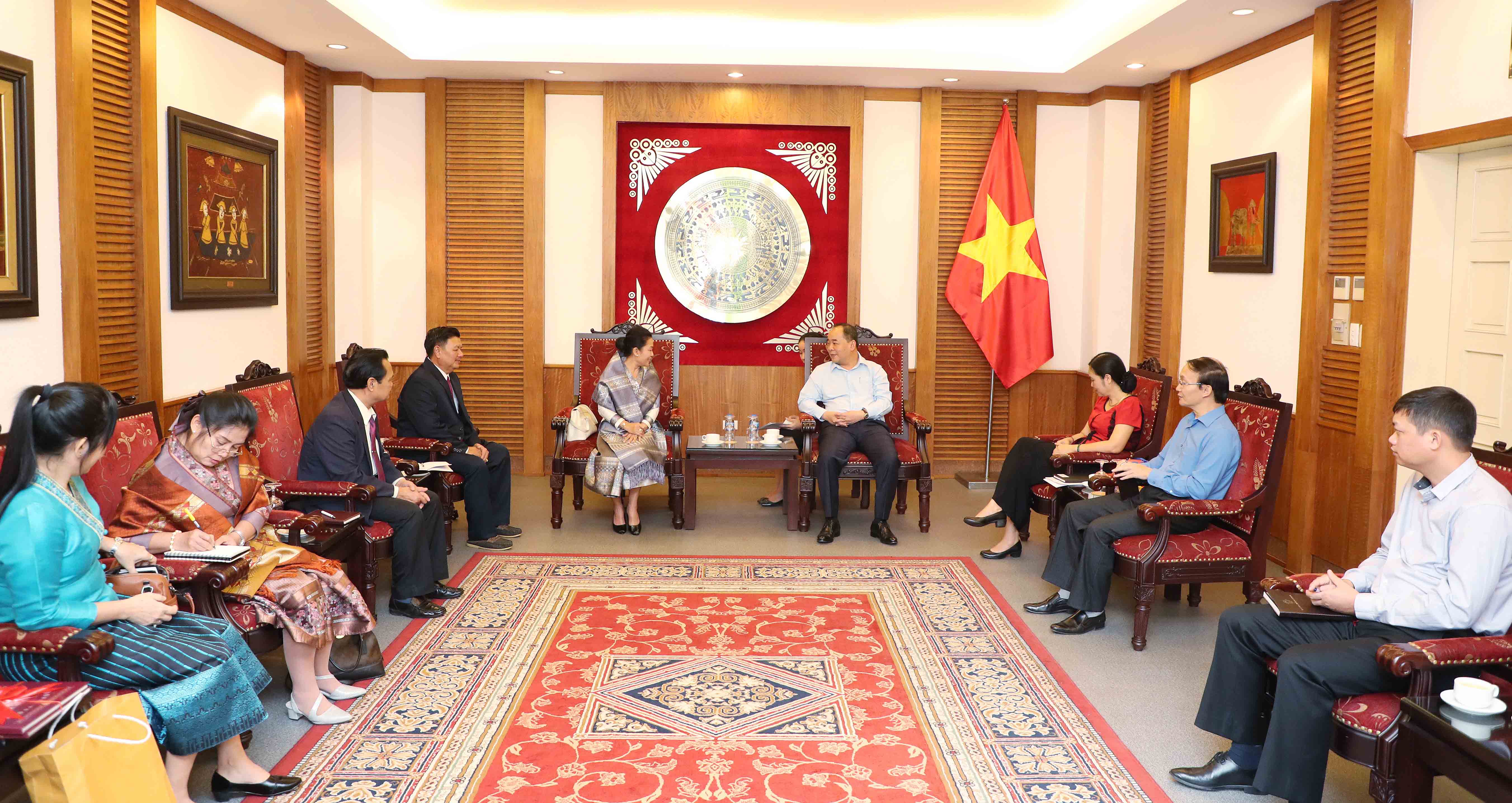 Thứ trưởng Lê Khánh Hải tiếp xã giao đoàn cán bộ Cục Xuất bản và Thư viện Lào