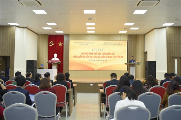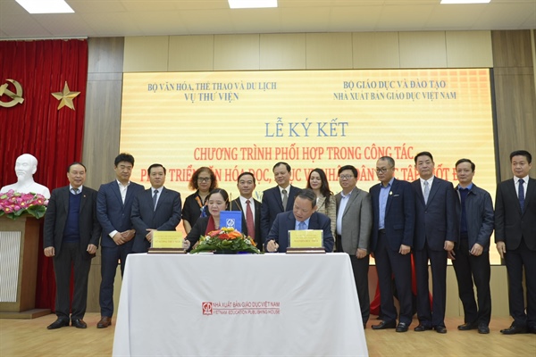 VHO- Sáng nay 16.1 tại Hà Nội, Vụ Thư viện đã tổ chức Lễ ký kết chương trình phối hợp công tác trong phát triển văn hóa đọc, phục vụ học tập suốt đời của người dân giữa Bộ VHTTDL với NXB Giáo dục Việt Nam.